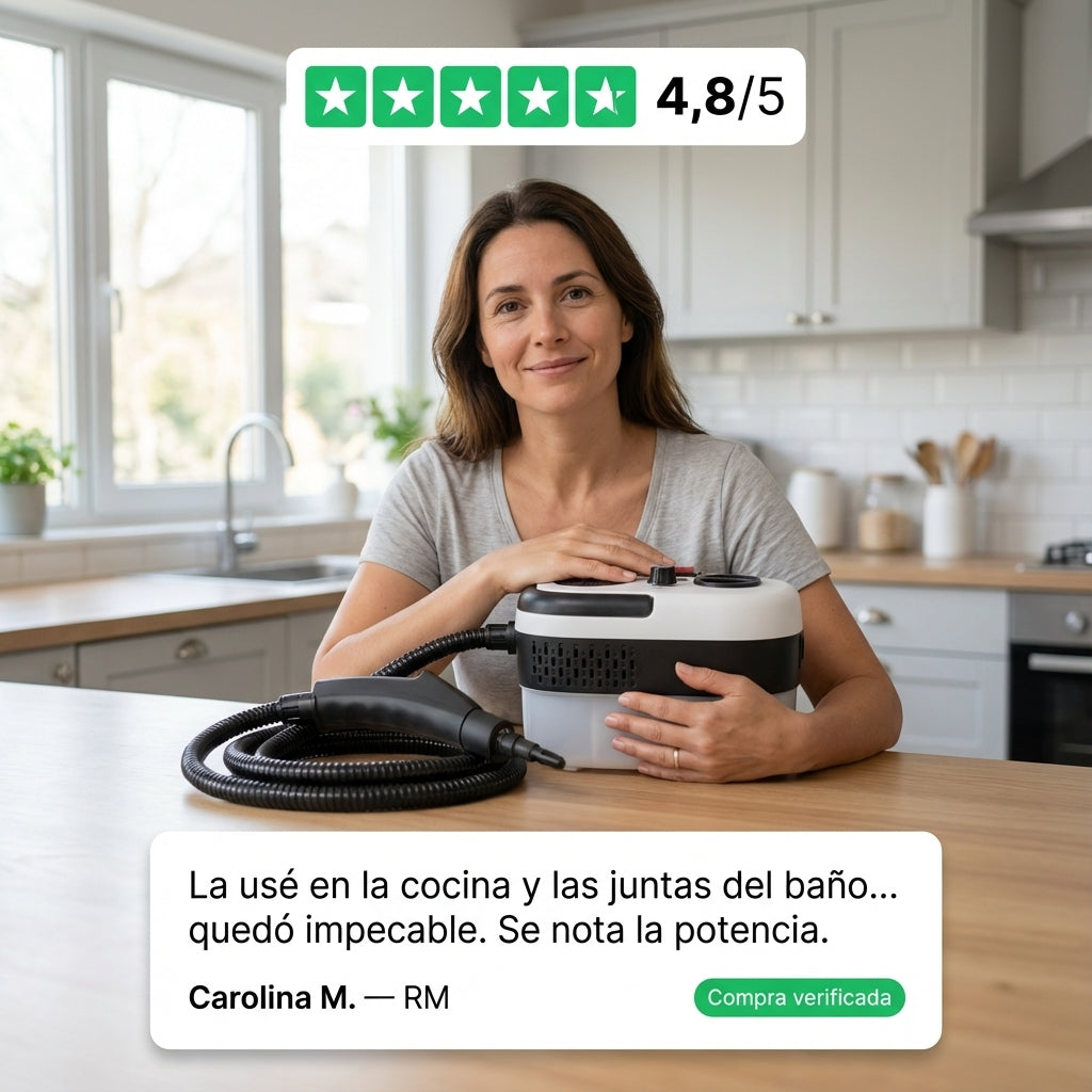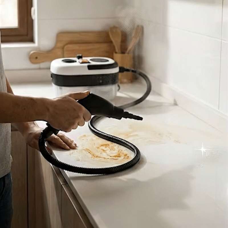 Grasa pegada, juntas y rincones difíciles. El vapor ayuda a aflojar la suciedad para limpiar más rápido y con menos esfuerzo. Se nota en la primera pasada. Pruébalo hoy en tu cocina o baño.